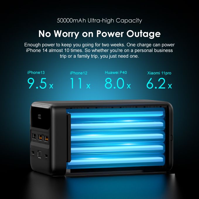 - Capacity: 50000mAh (185Wh)