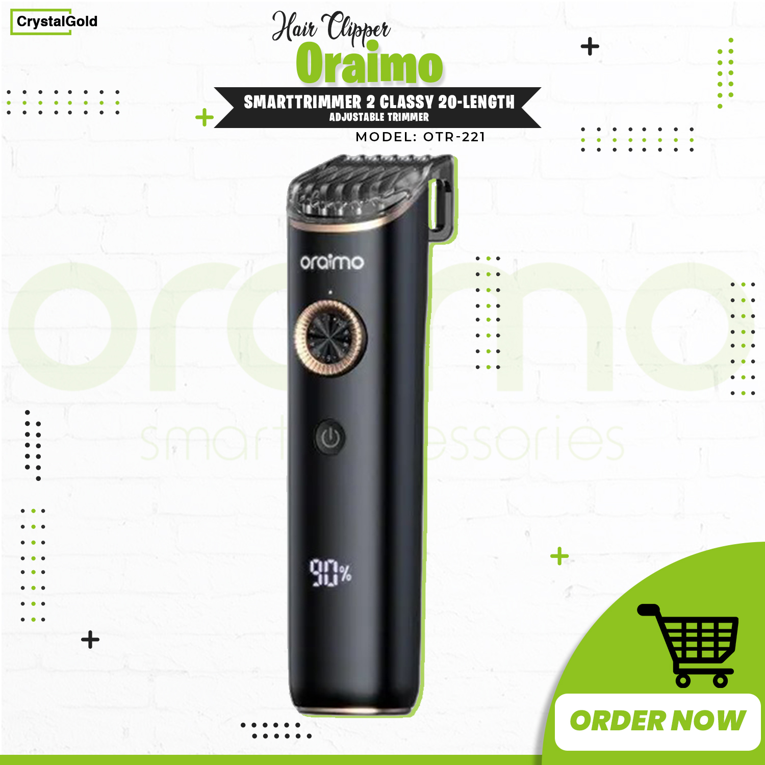 A powerful Lithium-ion battery gives you up to 1.5 hours of cordless trimming on a full charge. You can check the remaining power capacity on the digital screen by pressing the button.