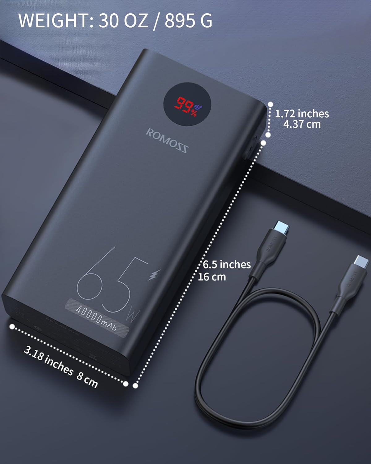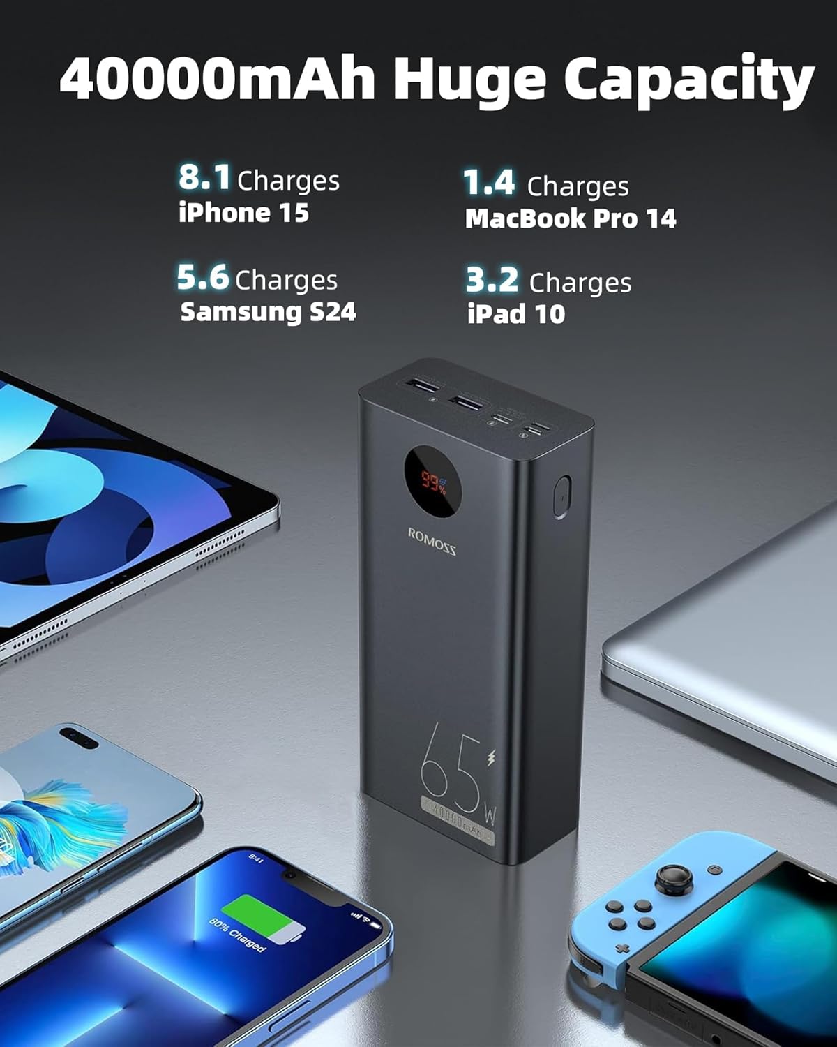 1 × ROMOSS 40000 mAh 65 W Power Bank